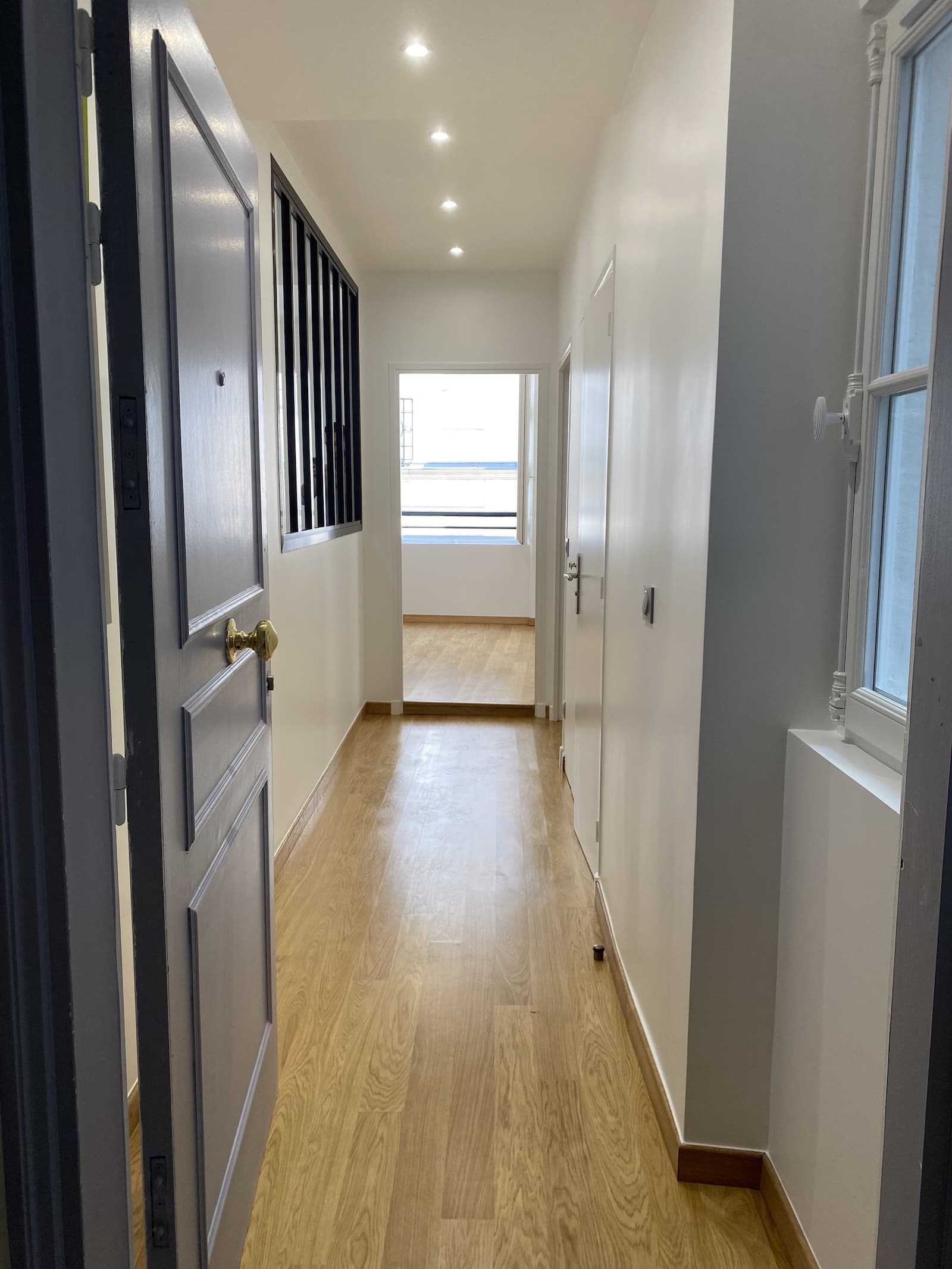 La rénovation est réalisée dans sa totalité et comprend la mise en œuvre de doublages thermiques sur les murs, la création de faux-plafonds, la pose de revêtements de sol en parquet massif, ainsi que la refonte complète des réseaux électriques et de plomberie. Le projet intègre également l’installation d’une cuisine entièrement aménagée.