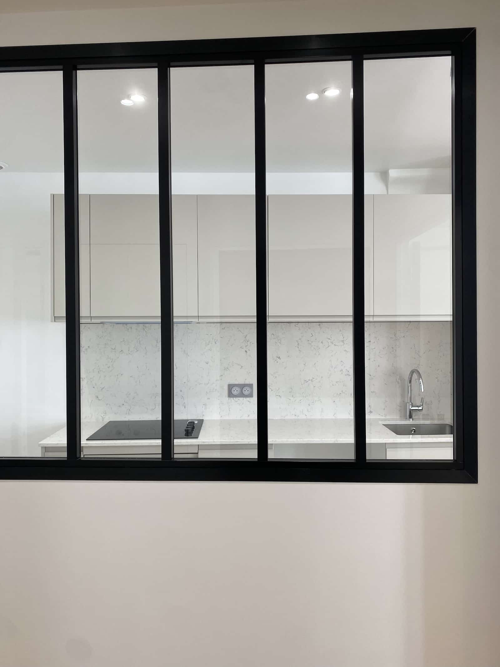 L’intervention prévoit la création d’une cuisine ouverte sur le séjour, séparée de l’entrée par une verrière, permettant de structurer les espaces tout en conservant la transparence et l’apport de lumière naturelle.