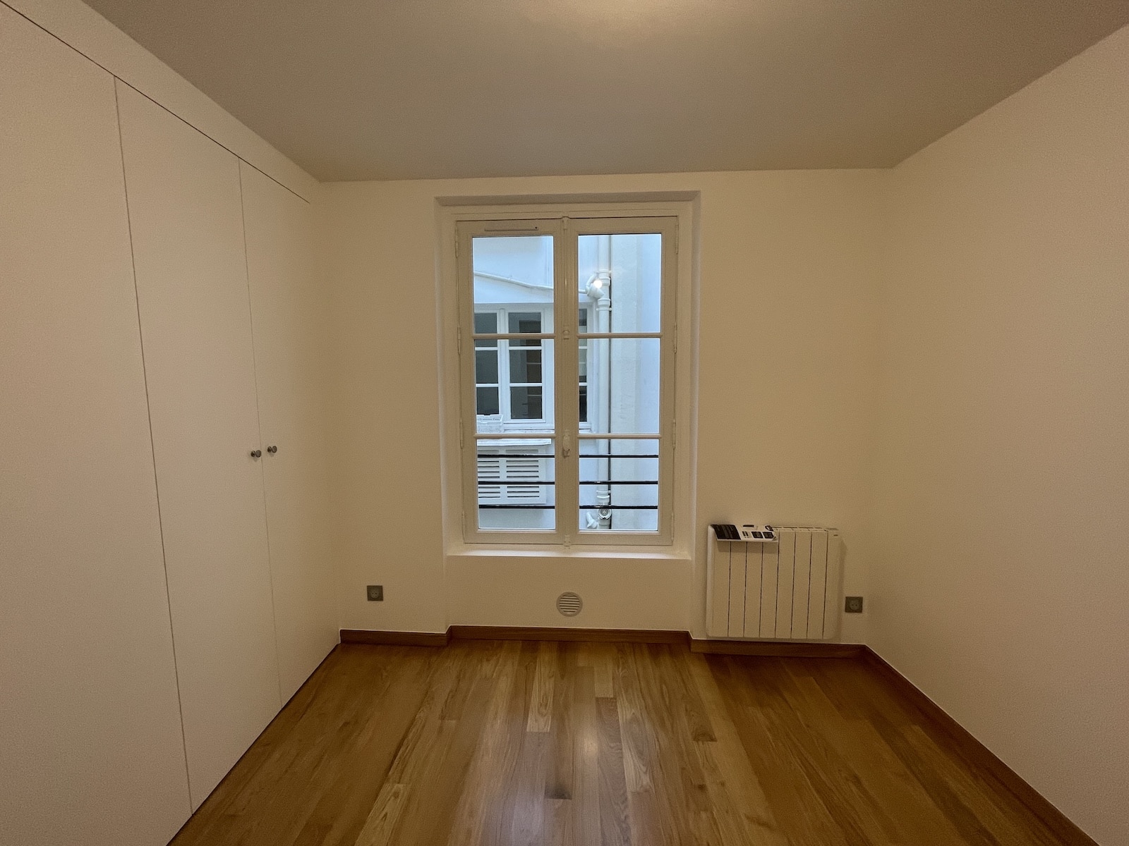 Un nouvel espace sanitaire est créé au niveau de l’entrée, distinct de la chambre. Cette nouvelle organisation permet de libérer l’ensemble de la façade donnant sur la rue pour le séjour, tandis que la chambre est implantée côté cour, offrant un environnement plus calme.