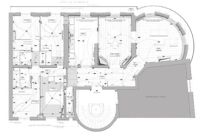 Le projet concerne la rénovation et le réaménagement d’un appartement, avec la création d’une chambre supplémentaire, portant le logement de trois à quatre chambres.