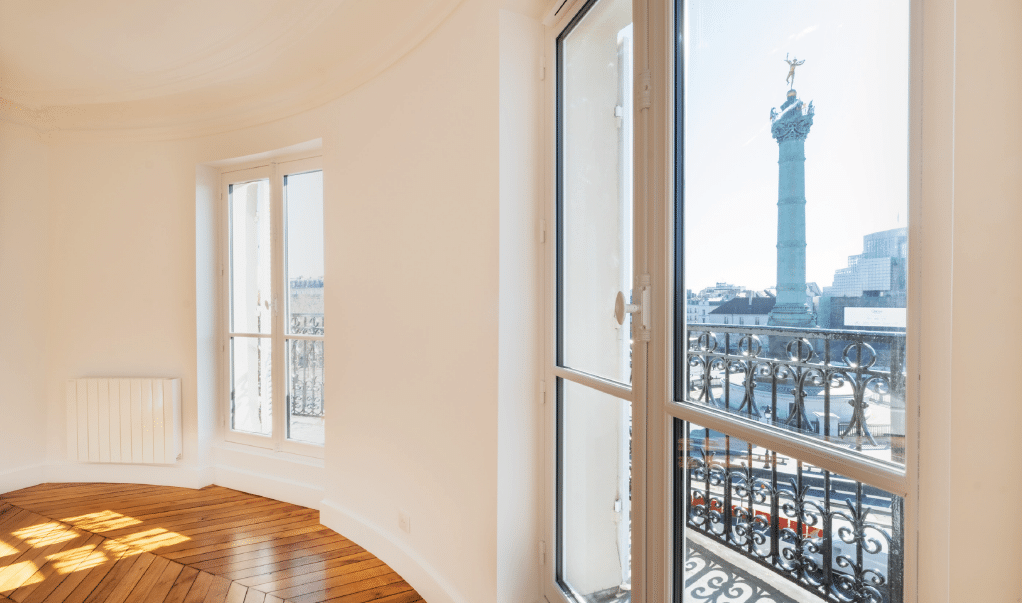 L’ensemble des menuiseries extérieures a été remplacé et les murs doublées par un isolant thermique, permettant d’améliorer les performances thermiques et acoustiques du logement.