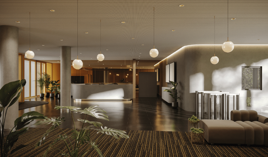 Enfin, un travail spécifique est mené sur le parcours et les flux de circulation des occupants et des visiteurs, afin de clarifier les cheminements, d’améliorer l’orientation et d’assurer une circulation fluide et intuitive au sein du hall.